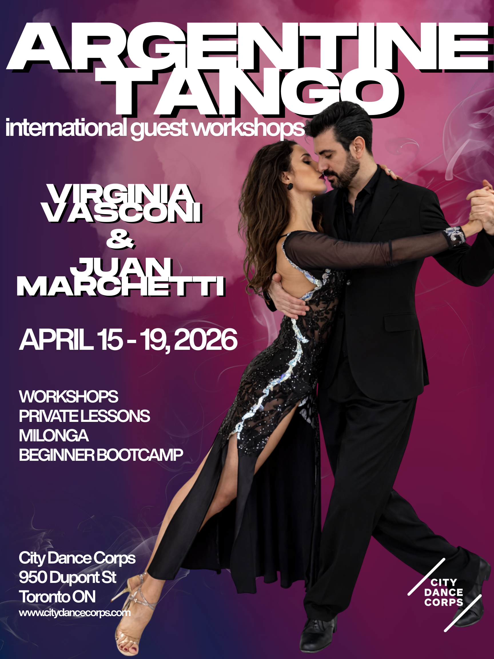 City Dance Corps is thrilled to welcome back Argentine Tango master Virginia Vasconi, this time joined by her new partner Juan Marchetti, for their North American debut together.